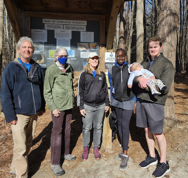 Below: Some happy NCPCA hikers hit the trail at Lake Crabtree County Park earlier this month. Thank you, Amy Blackwell, RPCV/South Africa, for organizing and leading! Our next hike will be on June 14 at Eno River State Park. Pictured left to right: Jim Hauser, RPCV/Chile, Amy Blackwell, RPCV/South Africa, Ruth Heuer, RPCV/Philippines, and Sam Scott, RPCV/Uganda (with wife Vivien and son Ezra).
