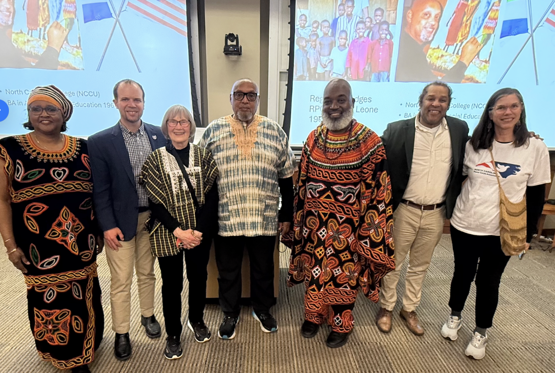 Photo below: a gathering of North Carolina Central University (NCCU) RPCV staff, including Reginald and Celeste Hodges, with faculty, alumni, and Stephanie Alt Lamm, NCPCA board member.